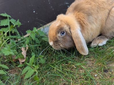 Alle unsere Kaninchen leben in geräumigen Gehegen mit täglichem Auslauf im Garten.